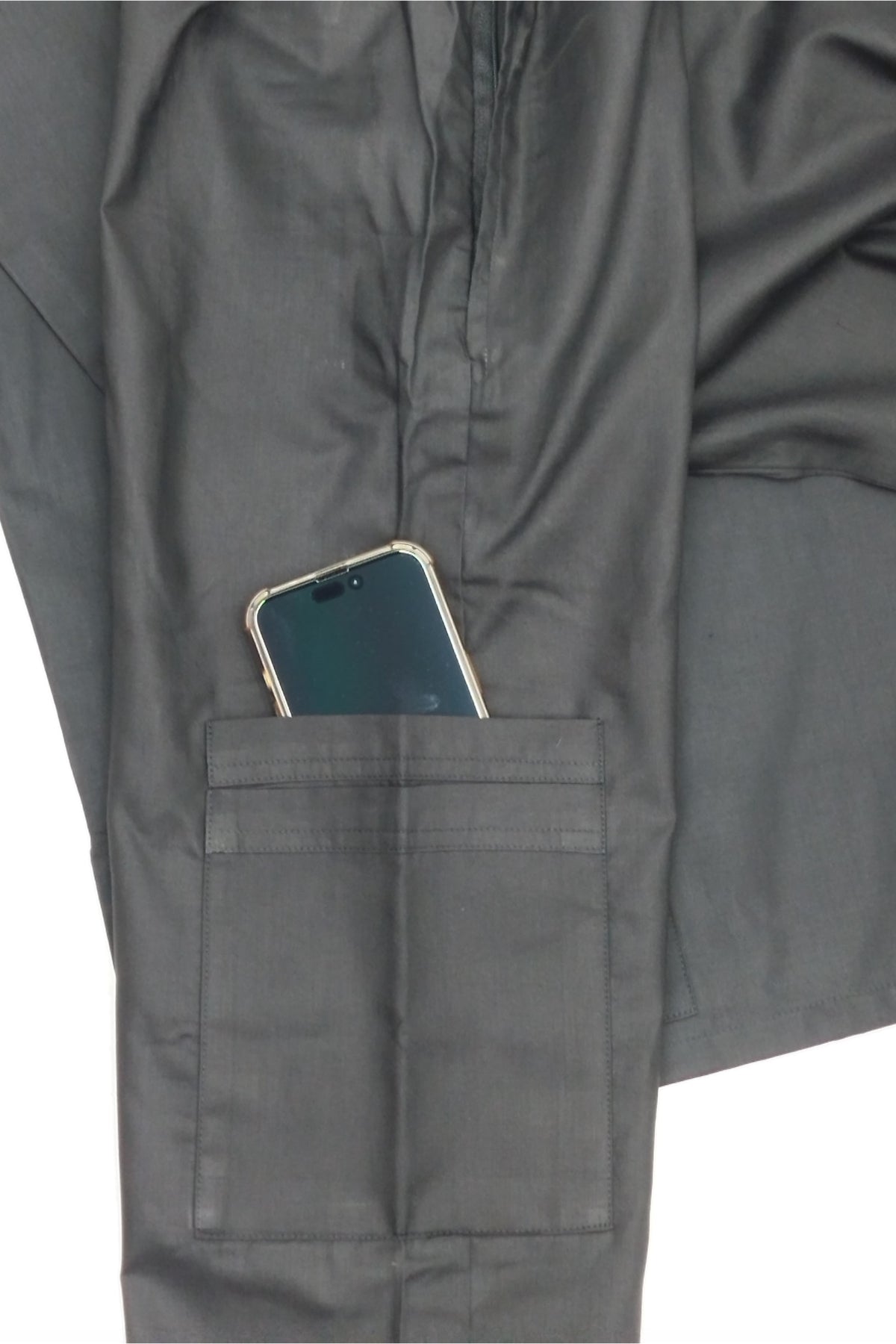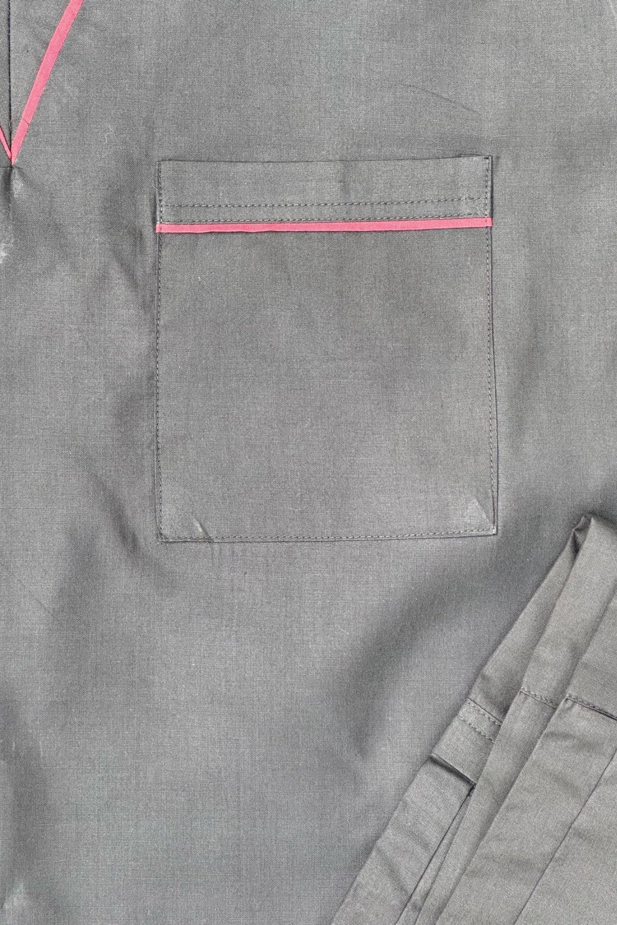 Step up your workwear with this sleek Black Scrub Set available in large size, highlighted with bold red piping for a sharp and professional look. Designed for both comfort and efficiency, this set offers a modern jogger fit and ample storage, making it an ideal choice for medical professionals and beyond.