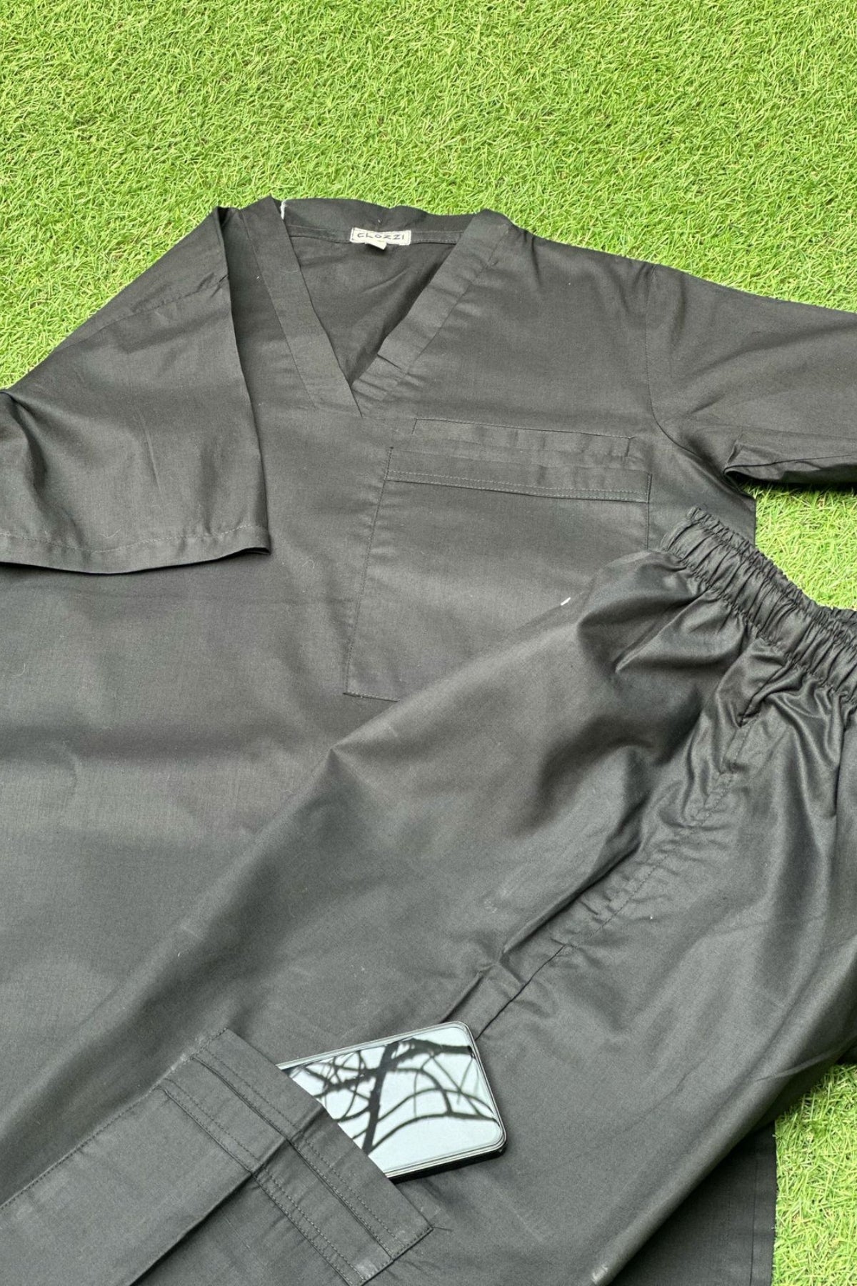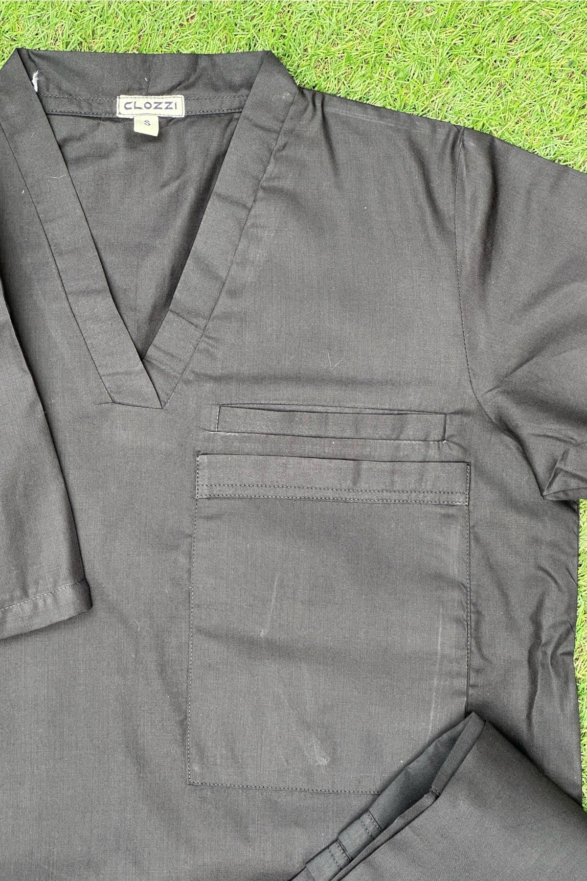 Upgrade your professional attire with our Black Scrub Set available in small size featuring functional pockets and a sleek design, perfectly tailored for healthcare professionals. This set offers comfort, practical storage, and a modern look, ensuring you stay organized and comfortable during long shifts.