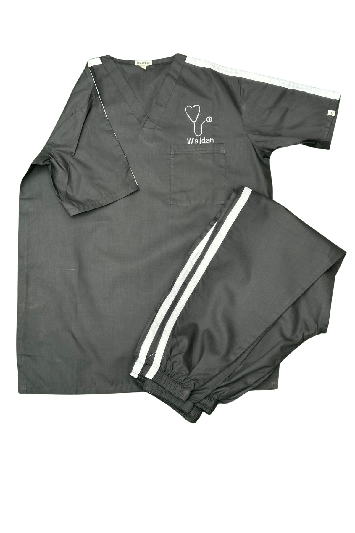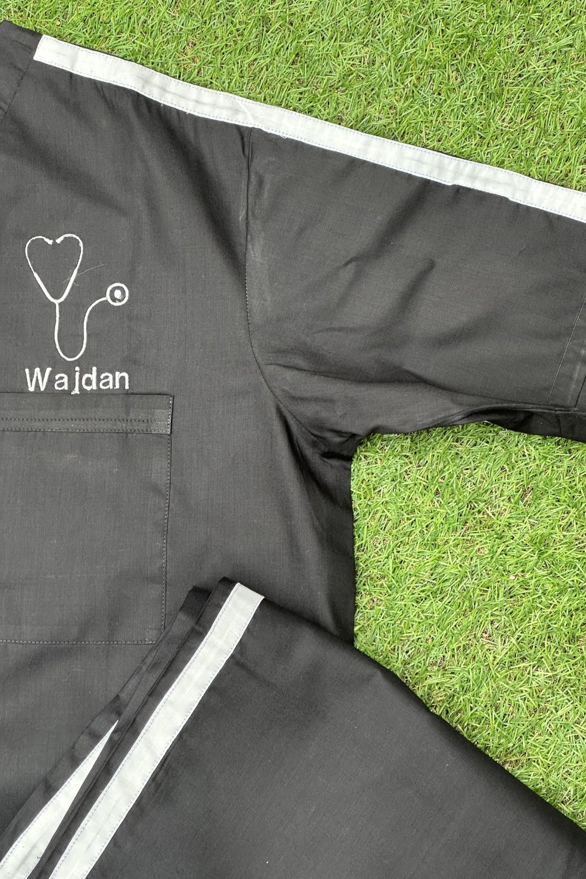 Upgrade your medical attire with this stylish and personalized black scrub set available in medium size. Designed to enhance your professional appearance without compromising comfort.