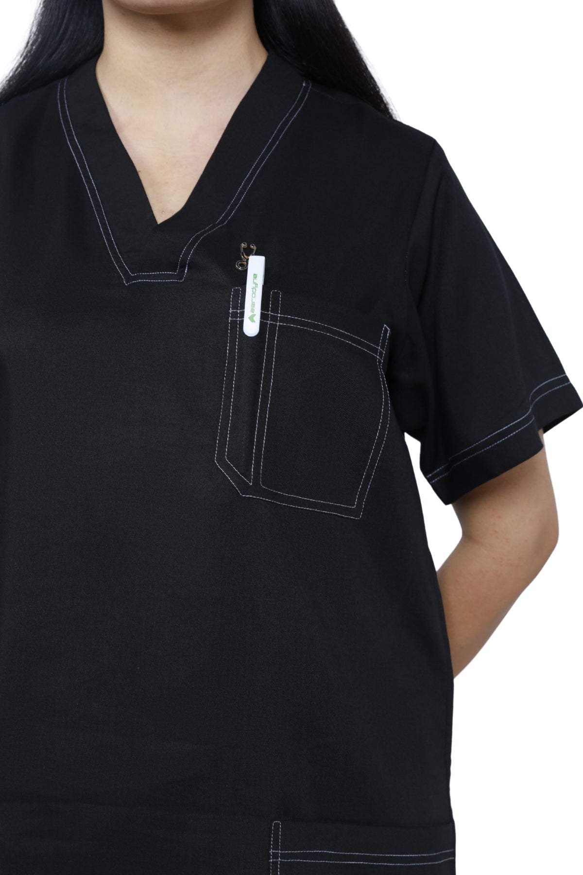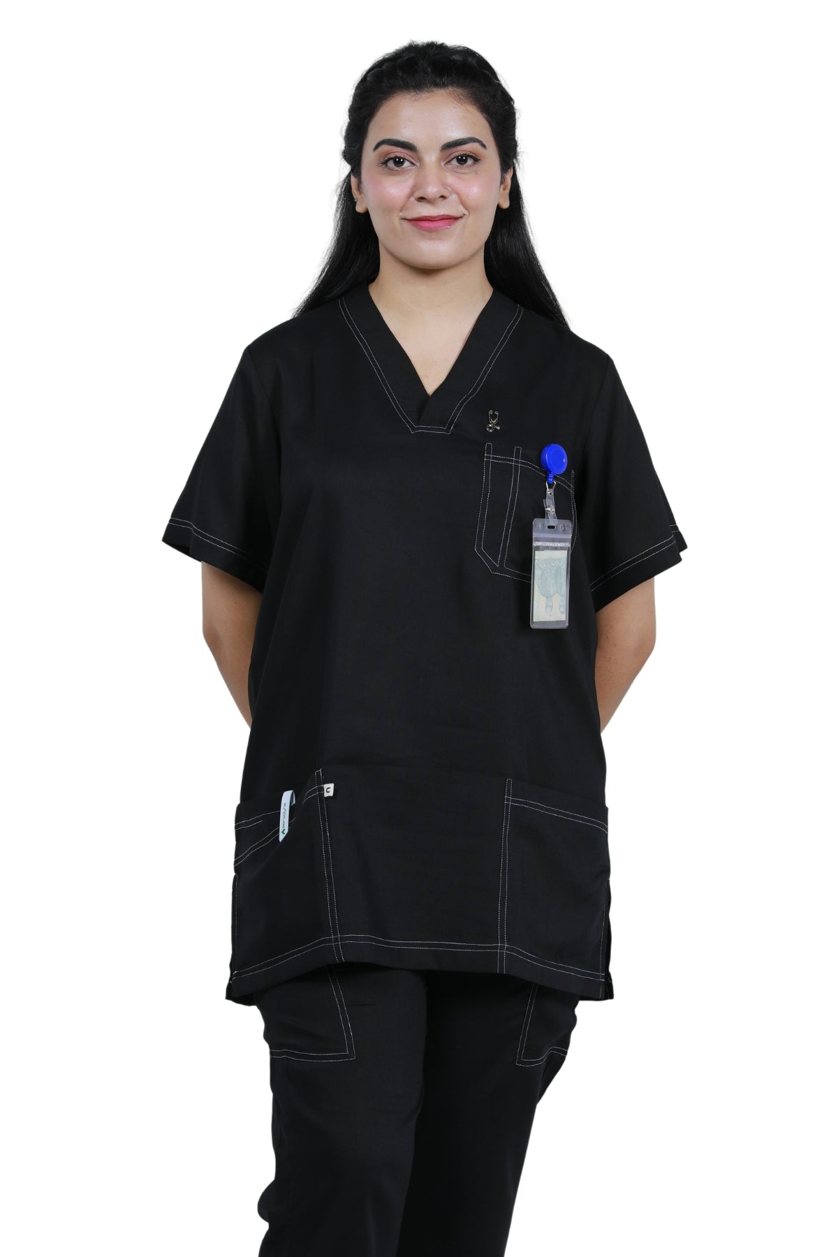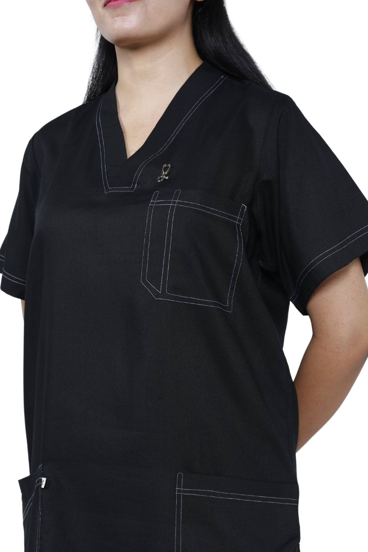 Modern V-Neck Design: Sleek and stylish, the V-neck top delivers a professional yet contemporary look suitable for all healthcare settings.